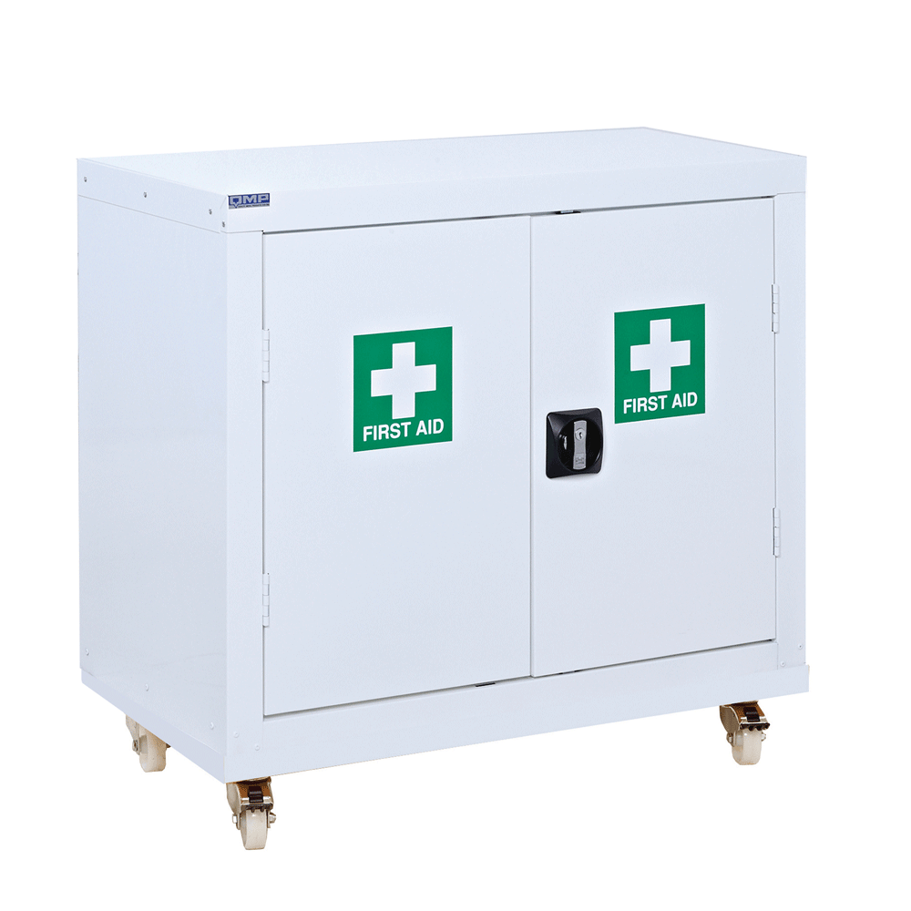 Keep and transport first aid supplies with ease using our small first aid mobile cupboard, measuring 840 x 900 x 460. Made from high-quality steel, this cupboard features instantly recognizable identification labels and a durable white powder-coated finish. Designed to store a wide range of first aid essentials, it’s perfect for use in schools, workplaces, or other environments. The mobile design ensures easy transport, making it a practical solution for keeping medical supplies accessible and organized wherever they are needed.