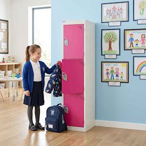 The 3 Door Metal PRIMARY SCHOOL LOCKER by QMP 123cm is a premium quality storage locker. Designed for primary or junior school children. Special low height locker with three compartments to store small bags, coats or books. School lockers are a great investment, not only do they help to keep classrooms tidy and reduce fire hazards. They also add a splash of colour and style to your school.