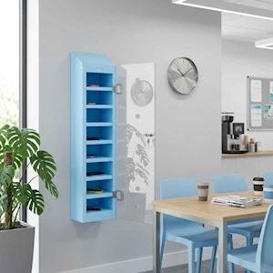 The robust polycarbonate door allows for easy inspection of mobile phones being safely stored inside. The single door is secured by a key held only by authorised personnel. Teachers can then easily distribute and return phones at the end of lessons. In addition, the sloping top feature prevents litter from cluttering space and helping to promote a tidy learning environment.