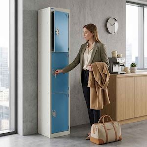 The QMP 3-door storage locker is typically a metal storage unit divided into three separate lockable compartments, each with its own door, for secure storage. These three door lockers are commonly used in various environments like gyms, schools, offices, or public facilities to store personal items. Available with keylocks or hasp locks, the 548mm high three door compartment locker can be locked individually, providing a convenient and organized way to store belongings while keeping them safe.