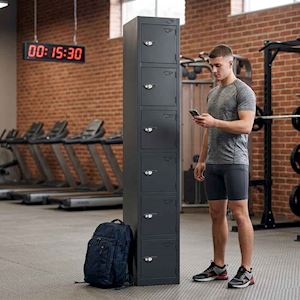 The Pure Black Metal 6 Door Locker is a sleek, space-efficient storage solution designed for modern environments. With six individual compartments stacked vertically, this locker is perfect for schools, gyms, offices, and staff rooms where multiple users need secure, personal storage.