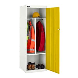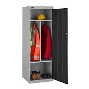 The Probe Metal Crew Locker with 4 Compartments is an ideal choice to safely store heavy workwear, bulky uniforms and footwear securely. This high-capacity storage locker is designed for use in demanding workplace environments such as police stations, ambulance and fire stations and staff changing areas. Complete with a generous 600mm wide x 600mm deep footprint, this locker comes with a full width top shelf, bottom shelf and sentral divider with two hanging rails to divide the locker into 4 compartments.